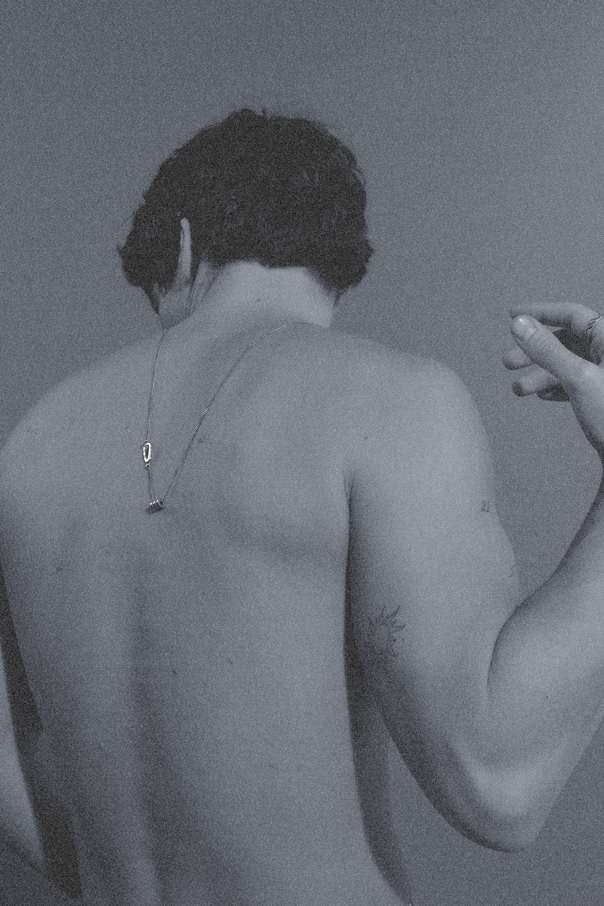 Two lines turning inward, like a bolt, like a ritual.