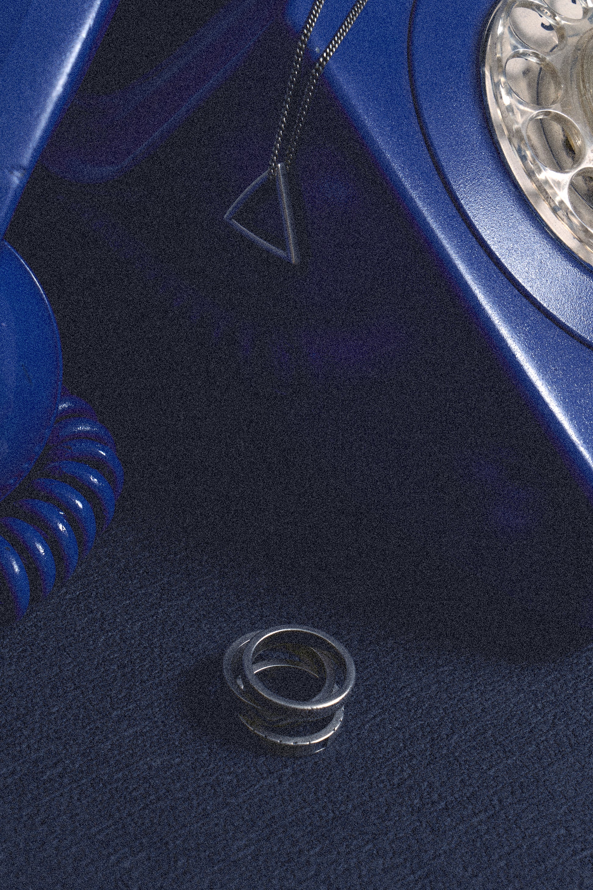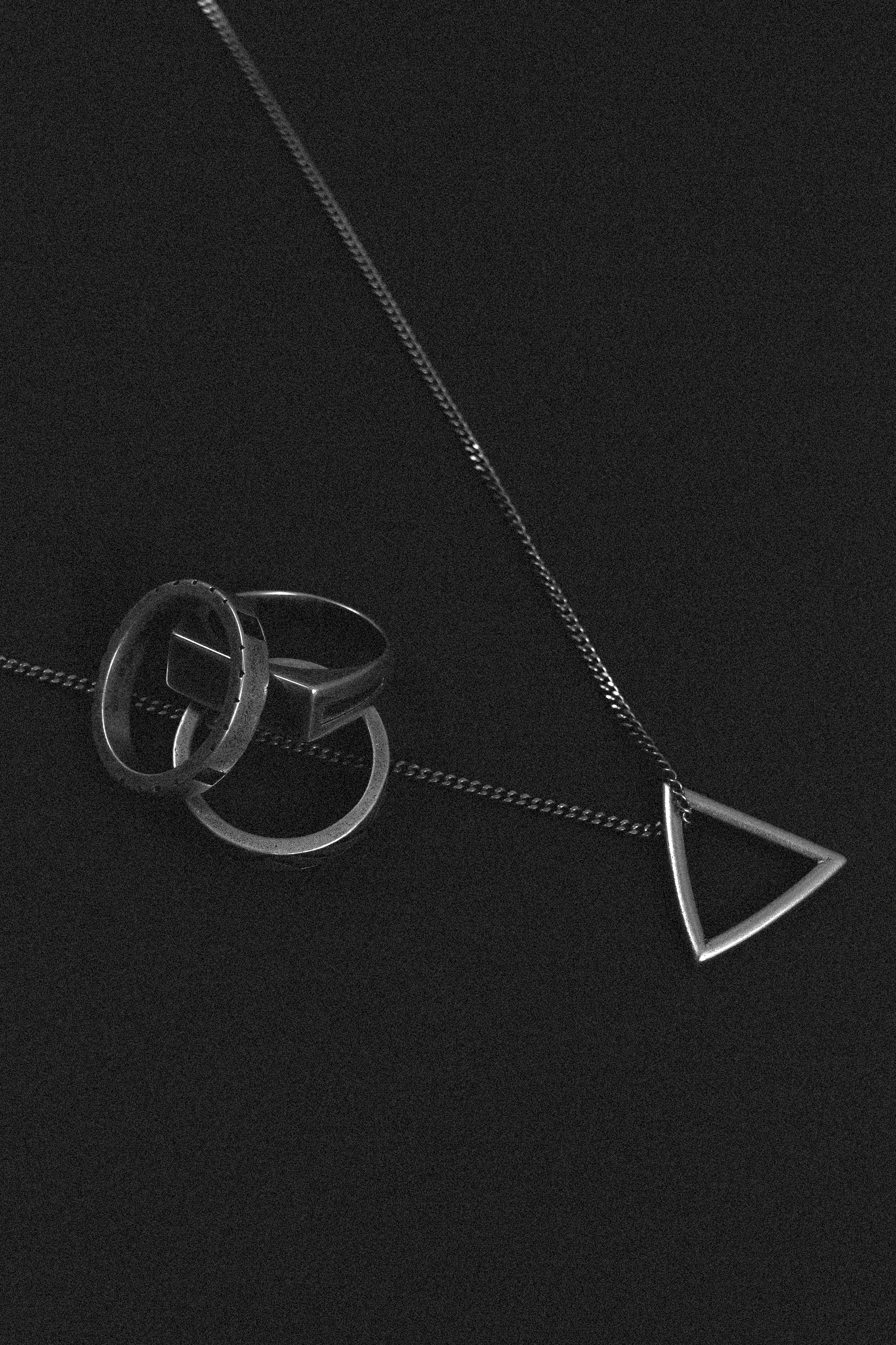 Detail: Layered triangular pendant. Stacked depth